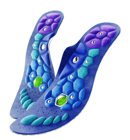 Die Einlegesohlen stützen das Fußgewölbe und verteilen den Druck auf den Fuß. Das weiche Material fühlt sich gut an, und das Silber hält Ihre Füße sauber. Die magnetischen Punkte drücken auf Teile Ihrer Füße, wie bei einer Fußmassage.